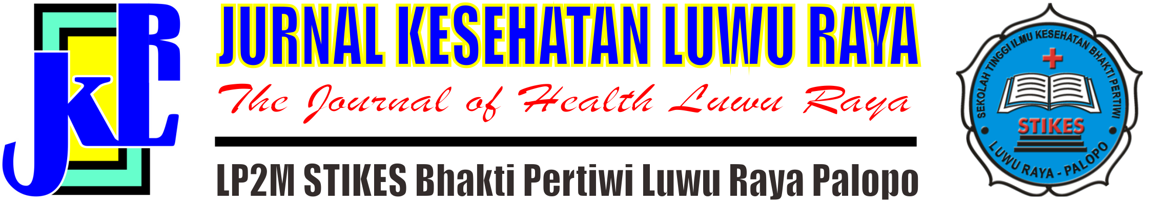 Jurnal Kesehatan Luwu Raya adalah media publikasi karya ilmiah, Skripsi, Tesis, Desertasi dan hasil penelitian yang relevan dengan peningkatan- peningkatan mutu dan kualitas pendidikan kesehatan. Diterbitkan oleh Lembaga Penelitian dan pengabdian masyarakat (LP2M) STIKES Bhakti Pertiwi Luwu Raya Palopo  Jurnal Kesehatan Luwu Raya hadir sebagai media ilmiah bagi praktisi dan professional dari berbagai disiplin ilmu yang terlibat dalam bidang Kesehatan untuk meningkatkan kualitas Riset dan Teknologi bidang Kesehatan di Indonesia berdasarkan evidence based research